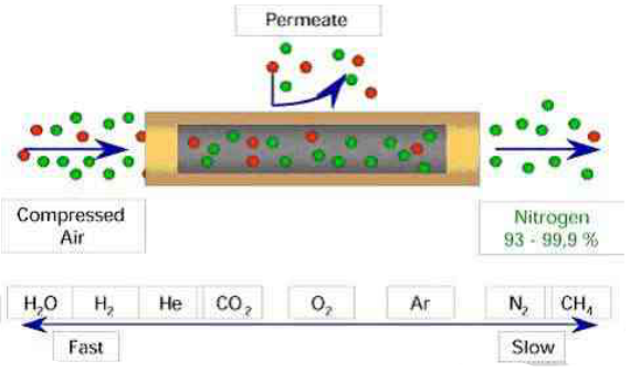 膜制氮機(jī)是一種新型的空分設(shè)備,該設(shè)備以空氣為原料,中空纖維膜為分離器,利用氧和氮在膜中相對(duì)滲透速率不同的特性,在常溫高壓下工作,得到連續(xù)、穩(wěn)定的氮?dú)狻?/p>