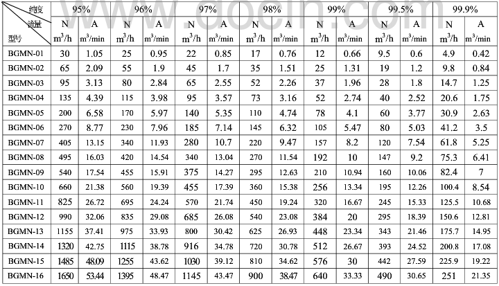 瑞氣膜制氮系列產(chǎn)品選型表如下: