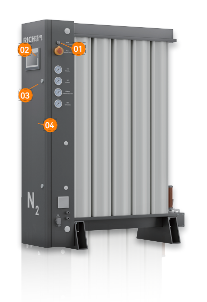 PNK制氮機(jī)根據(jù)變壓吸附原理(PSA),從潔凈的壓縮空氣中持續(xù)分離出氮氣。